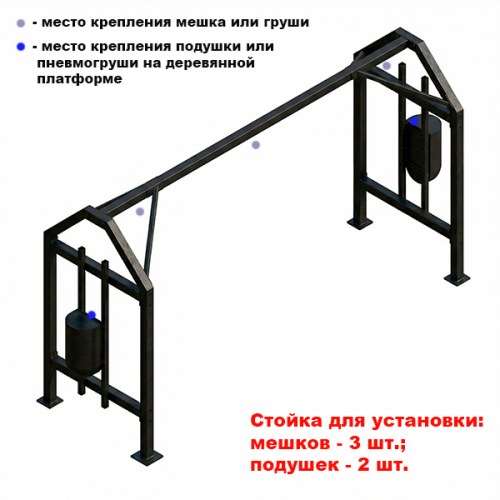 Стойка для боксерских мешков профессиональная №1 (на 3 мешка, 2 подушки) (Ш:Д:В): 1,64:5,0:2,8 м.